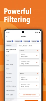 • Contact a seller by phone, text, or email directly from a vehicle listing