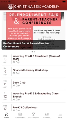 The Christina Seix Academy app provides parents, students, and faculty members with all the information they need in one place, conveniently accessed and formatted specifically for consumption on their mobile devices.