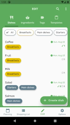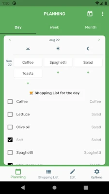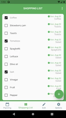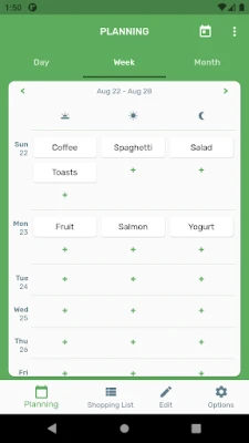 The app will also generate a shopping list for the week, automatically. You will save money, buying only the items you need.
