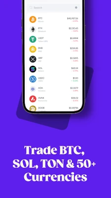 • Trade 50+ top cryptocurrencies like BTC, ETH, SOL, PEPE, WIF, and more