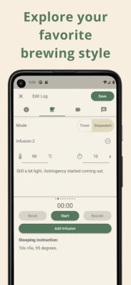 • LOG: Log your tasting notes and brew statistics by infusion to create your personal tea journal