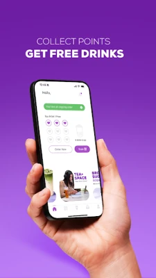 Every time you order a drink from Tea Plus, you will get 1 point.