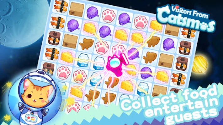 Play match 3 to help the cats from Catsmos collect furniture, food and items! The more objects they have, the more Catsmos mates they will attract to their house.