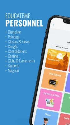 Educateme Personnel est une application conçue spécifiquement pour le personnel des écoles, visant à faciliter, optimiser et moderniser leurs tâches quotidiennes. Grâce à une interface intuitive et un design ergonomique, cette application s'adapte aux besoins spécifiques de chaque membre de l'équipe éducative