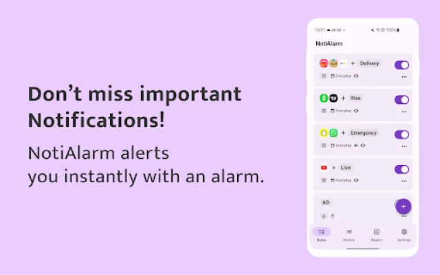 “NotiAlarm” is the smart notification app that ensures you never miss important alerts. By setting specific keywords, NotiAlarm will alert you immediately with an alarm whenever a crucial notification arrives. Filter notifications from selected apps to focus on what truly matters. You can also customize the days and times you want to receive notifications to fit your lifestyle.