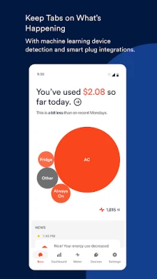 See how much energy your home is consuming in real time and how it compares to previous months right from your phone. Understand how your activity impacts your electric bill and get tips on how to save. People who use Sense save, on average, 8% on their electric bill.